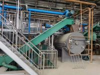 層蝶式汽提塔是國內浸出油廠使用較多的一種汽提設備。若按照水蒸氣對混合油的汽提次數,層蝶式汽提塔可分為單段式和雙段式兩種。雙段蝶式汽提塔,它主要有頂蓋、上塔體、中塔體、下塔體以及底蓋所組成。在上塔體和下塔體內各有6-9組碟盤。每組碟盤都由滯流盤、錐形分配碟和環(huán)形分配碟組成。上、下塔體的外殼均裝有夾套,在夾套中通入343-441kPa的加熱蒸汽對塔內的混合油進行間接加熱。中塔體和底盤內各有一組直接蒸汽噴入裝置。這組裝置由集油盤、導流管、中心管、直接蒸汽噴管組成。來自第二蒸發(fā)器的混合油,進入層蝶式汽提塔的進油管之后,自上而下逐次流經每一組碟盤。到達中塔體的集油盤底的阻攔,被汽提出的溶劑蒸汽和水蒸氣繞過集油盤向上移動,而油被阻留落下。之后,混合油又沿著下塔體內的各組碟盤逐次流下,到達底蓋內,在直接蒸汽噴入裝置中又一次被汽提,汽提出的溶劑蒸汽和水蒸氣自下而上逐級通過每一組碟盤的空隙,與碟盤表面流下的液膜狀混合油充分接觸,使混合油得到進一步汽提。到達頂部的混合蒸汽通過出氣管進入汽提冷凝器。經汽提后的浸出毛油從底部的出油管通過液封裝置排出。層蝶式汽提塔結構較為簡單,操作方便,工藝效果好。但是必須注意的:每一組碟盤的制造質量和是否水平安裝,將影響混合油液膜的形成與氣液相接觸的面積;直接蒸汽含水,會造成毛油中磷脂的析出;直接蒸汽壓力過高或者用量過大,會形成液泛現象;混合油中含雜太多,則使汽提塔碟盤表面的結垢現象嚴重,毛油質量降低;若采用多段式,應使上層直接蒸汽壓力低于下層。直接蒸汽好采用低壓過熱蒸汽。層蝶式汽提塔在檢修時碟盤的清理比較麻煩。